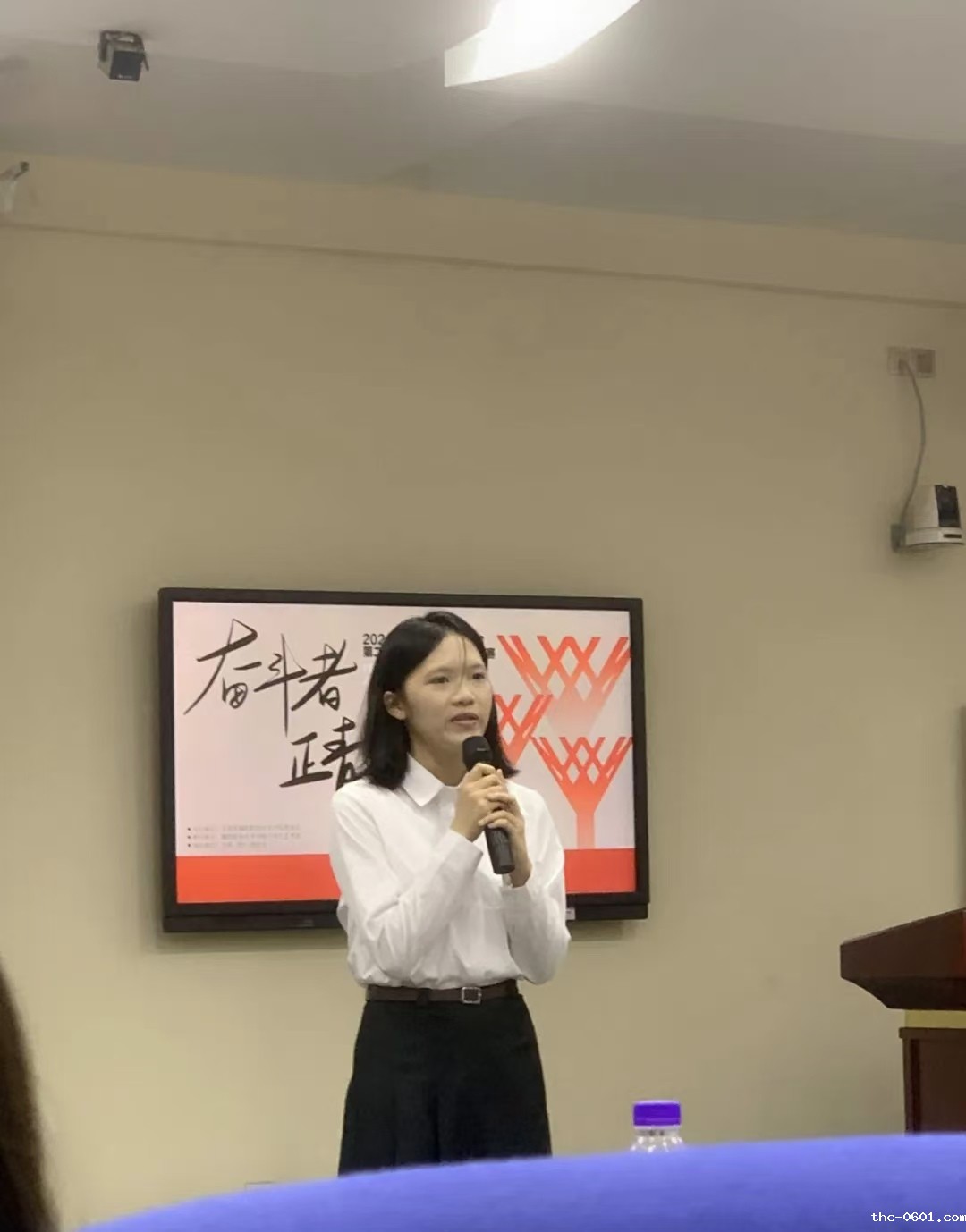 2024年5月30日,阳光明媚的午后,我校隆重举办了第二届“奋斗者·正青春”青年学生演讲比赛的总决赛。经过激烈的角逐,我系应化231班的简俊怡同学在陈泽纯老师的精心指导下,凭借原创文稿《将青春献于奋斗》及富有感染力的演讲,在众多参赛者中脱颖而出,一举夺得比赛一等奖。